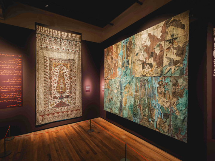 Roots in the Sky, Nour Jaouda, 2024, private collection, en gebedskleed collectie Wereldmuseum, Foto Kaka Lee