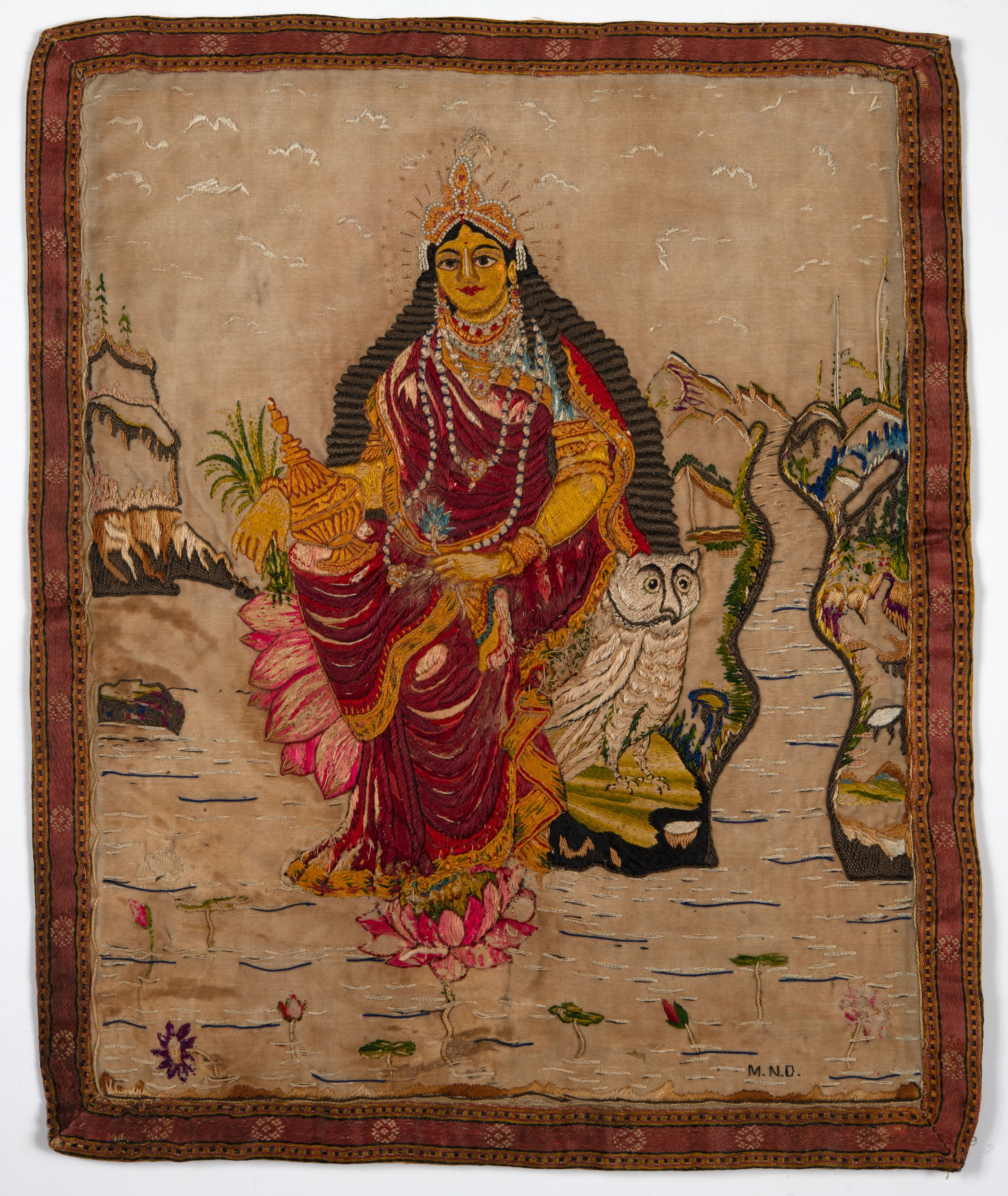 Wandversiering Geborduurde afbeelding van Lakshmi_India_ca.1900_Collectie Tropenmuseum_TM-6150-1