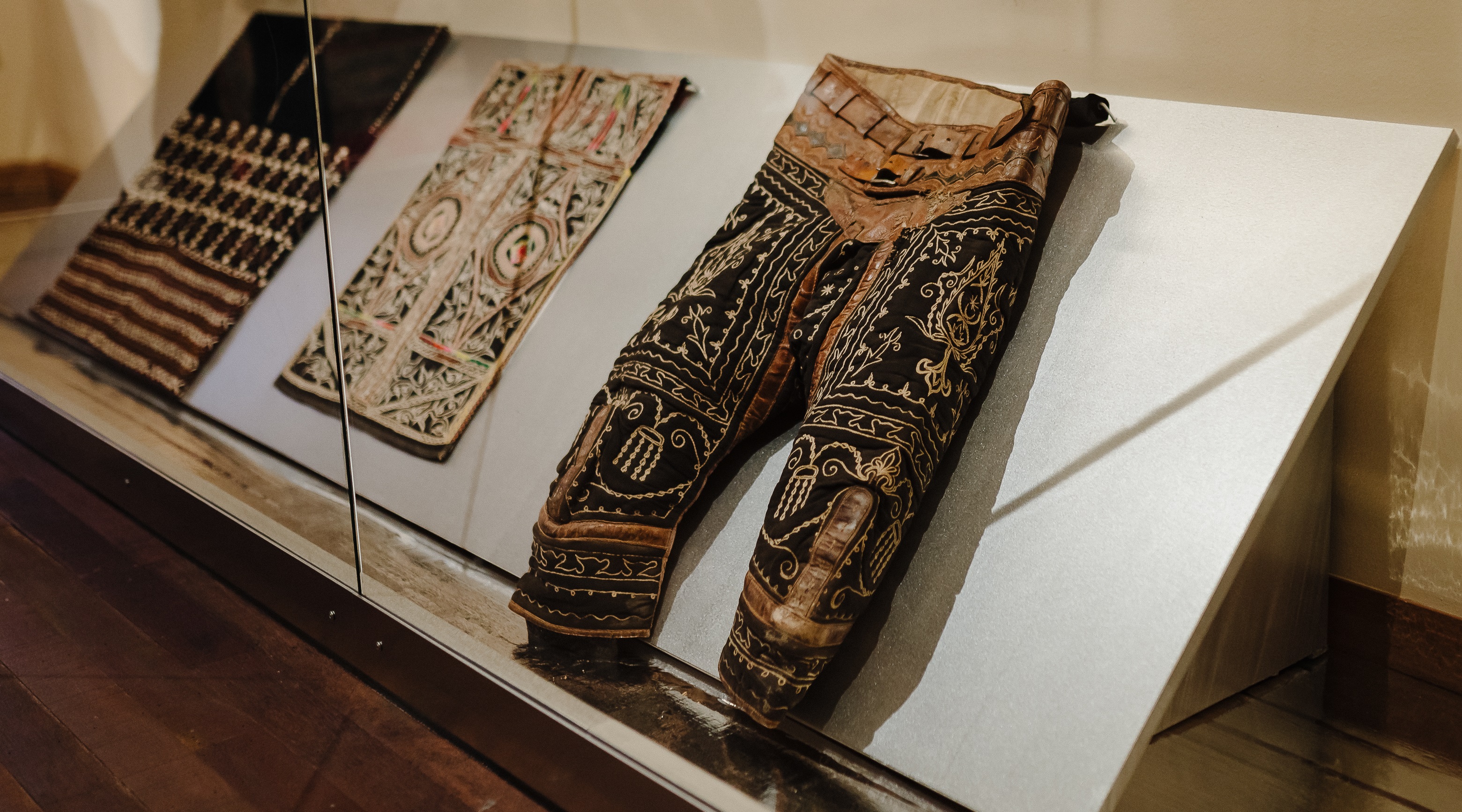 SPORTS PANTS_Iran_before 1972_cotton, leather, rope_chain stitch_TM-4067-30